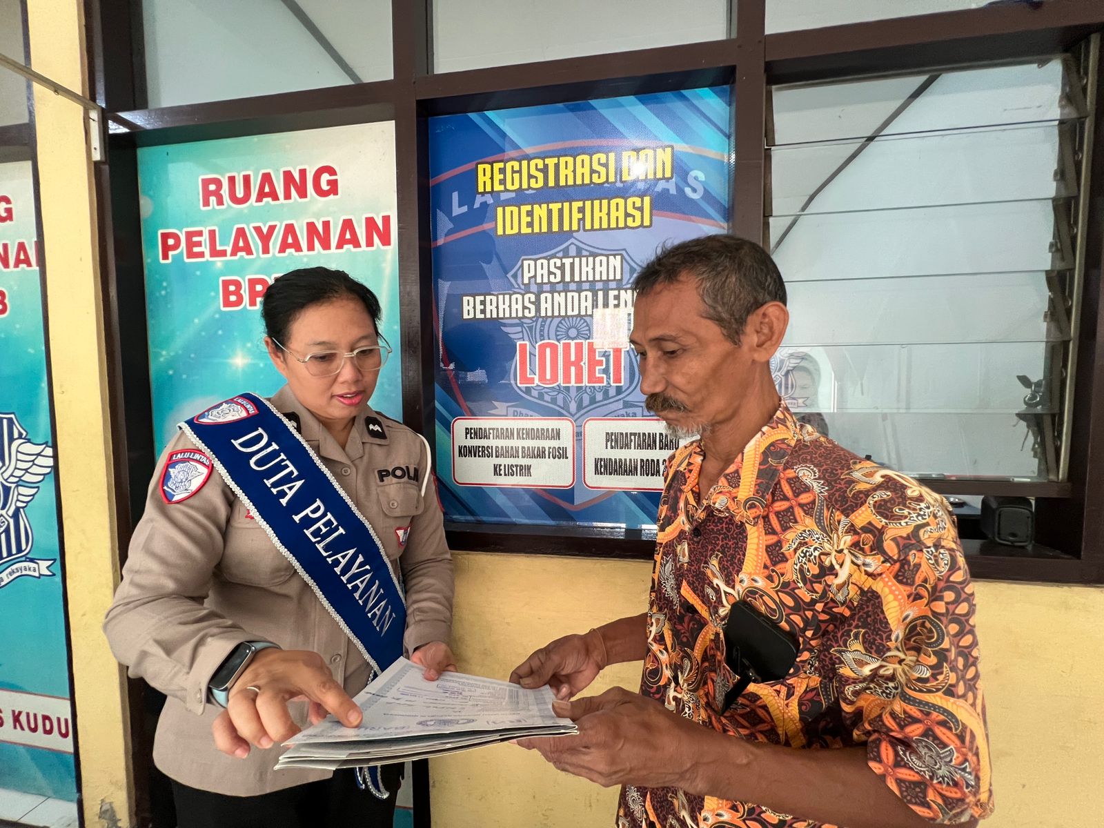 Duta Pelayanan memberikan edukasi terhadap pemohon bpkb terkait proses ganti pemilik bpkb dengan jelas dan humanis serta mengingatkan sebelum meninggalkan ruang pelayanan agar mengecek surat surat kendaraan dan di pastikan tidak ada yang ketinggalan.