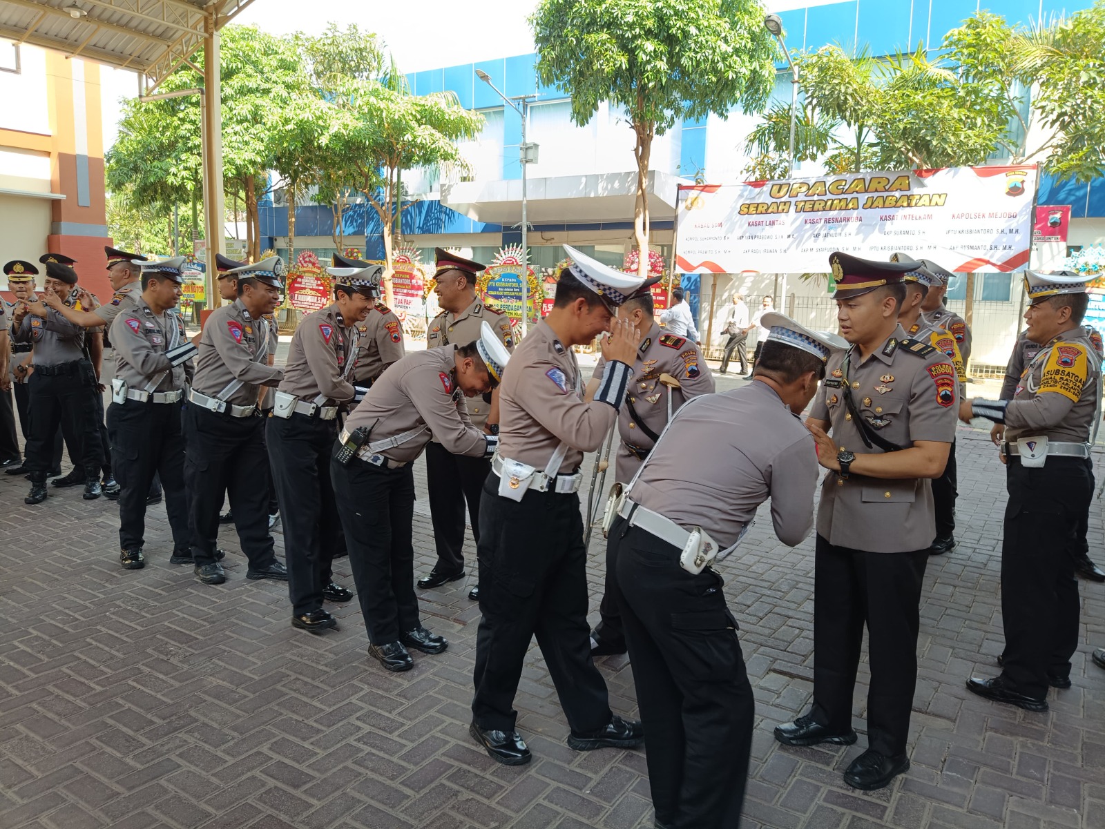 Kapolres Kudus AKBP Dydit Dwi Susanto S.I.K., M.Si. memimpin upacara serah terima jabatan (sertijab) Kabag SDM, Kasat Lantas, Kasat Intelkam, Kasat Resnarkoba dan Kapolsek Mejobo di lapangan apel Mapolres Kudus, Sabtu (21/10/2023).