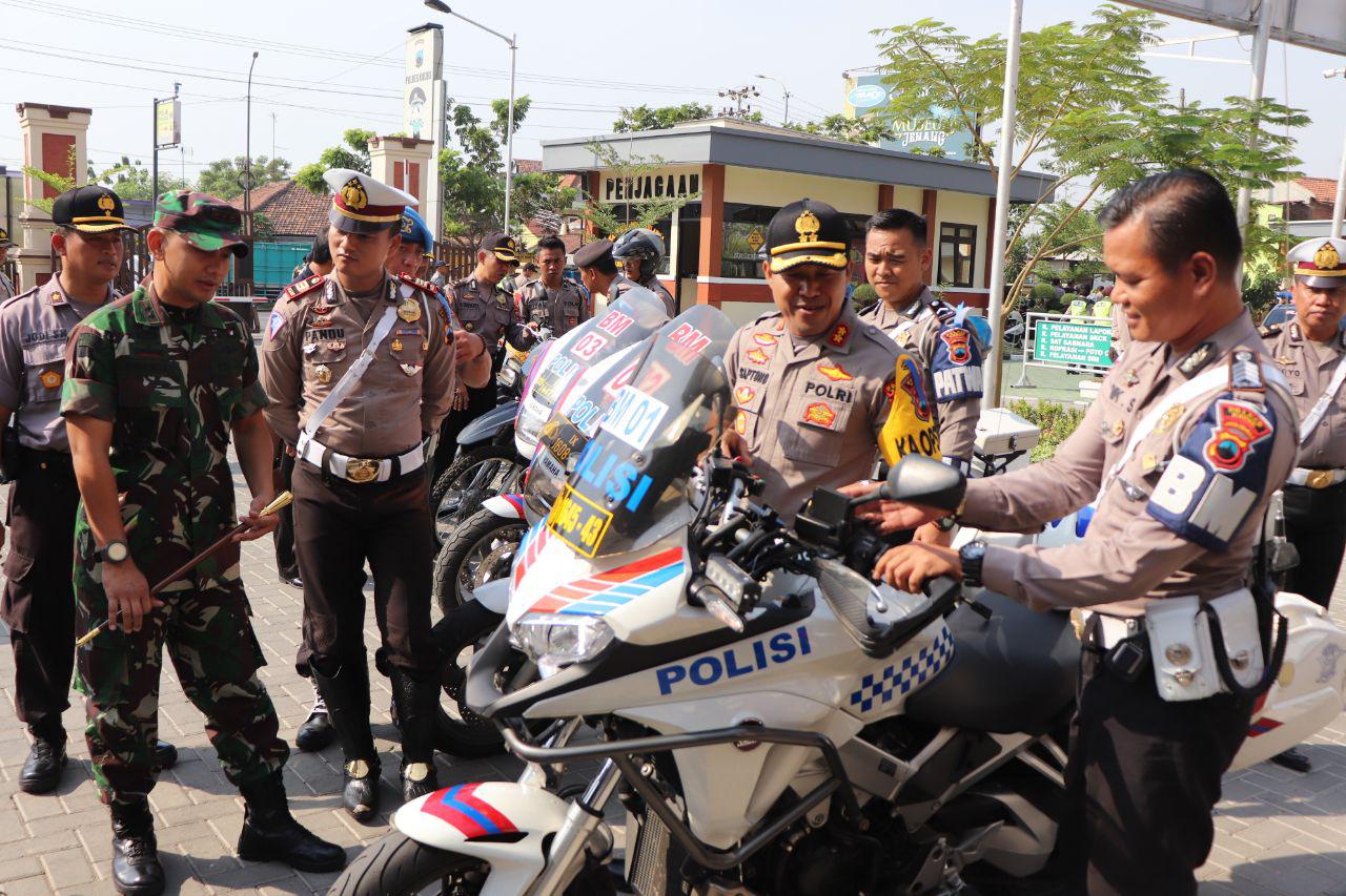 Dalam Gelar Pasukan Operasi Patuh Candi 2023 dilakukan penyematan pita tanda operasi kepada perwakilan personel Polri, TNI, Dishub dan Satpol-PP. Usai apel dilakukan pemeriksaan ranmor dinas.