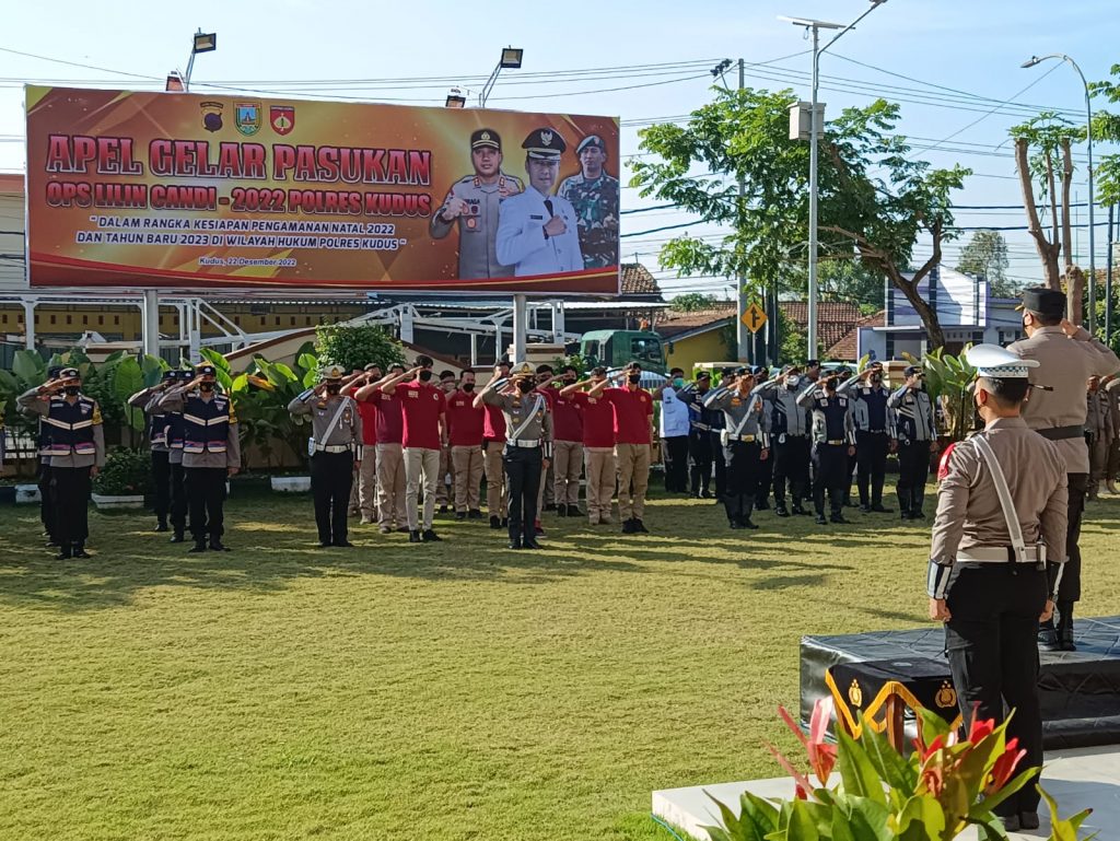 Polres Kudus melaksanakan Apel Gelar Pasukan Operasi Patuh Candi 2023 di halaman Mapolres Kudus, Senin (10/7/2023) pagi. Apel menandai berlakunya Operasi Patuh Candi 2023 di wilayah Kabupaten Kudus.