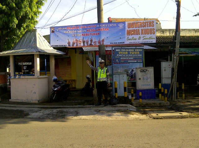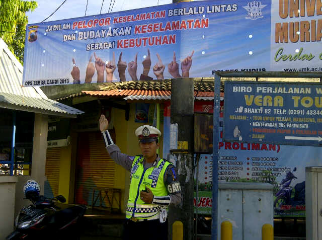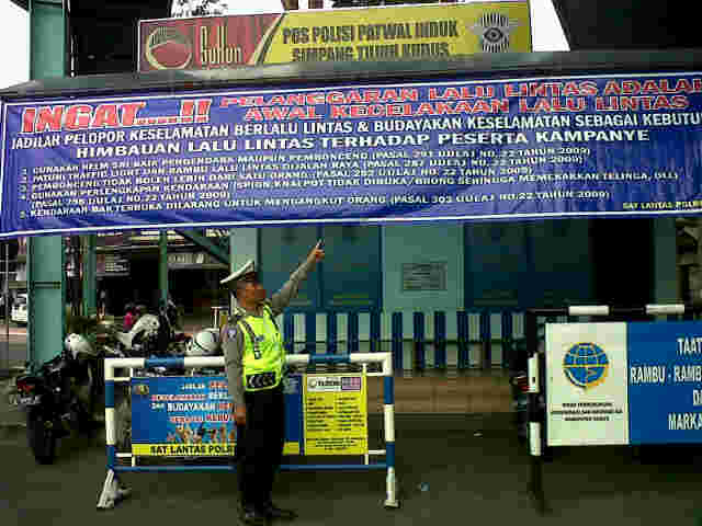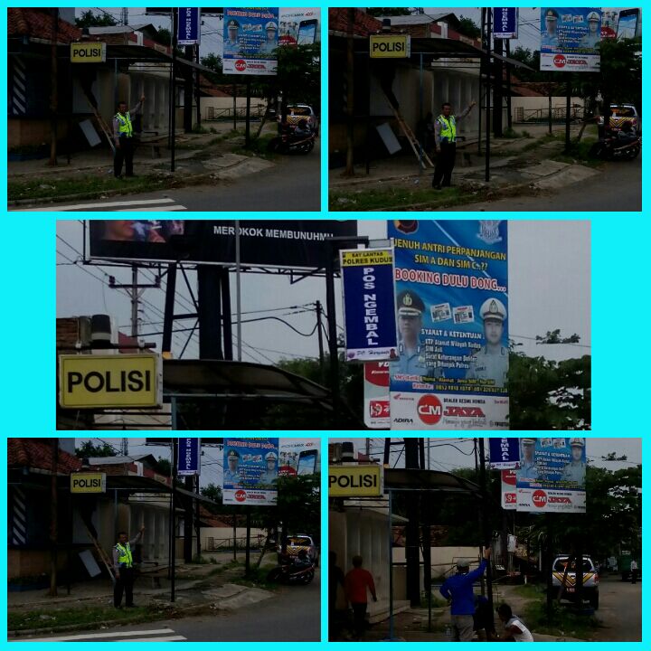 Anggota sat lantas melaksanakan giat pemasangan banner dalam rangka persiapan Ops Simaptik Candi 2016 terhadap seluruh pengguna jalan yang melintas di wilayah hukum polres kudus serta mendukung Program Bulan Tertib Lalu lintas yang bertujuan memberikan pengetahuan, pemahaman dan himbauan kepada seluruh masyarakat agar dan tertib berlalu lintas di jalan untuk tidak melakukan pelanggaran sekecil apapun sehingga dapat mengurangi pelanggaran dan angka kecelakan lalu lintas khusunya di wilayah kabupaten kudus