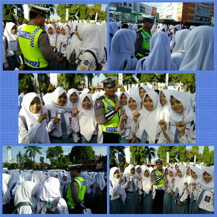 Anggota sat lantas melaksanakan giat dikmas lantas terhadap siswa siswi SMA Se-Kab. Kudus dalam rangka Hardiknas bertempat di alun-alun simpang tujuh kudus kegiatan ini bertujuan untuk mengajak seluruh lapisan mayarakat khususnya para siswa untuk selalu menjadi pelopor keselamatan berlalu lintas dengan mematuhi aturan lalu lintas sehingga dapat menambah pengetahuan pemahaman tentang etika berlalu lintas di jalan raya