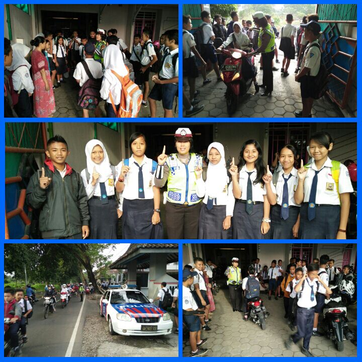 Anggota sat lantas melaksanakan giat dikmas etrhadap siswa-siswi dari SMP Negeri 3 Bae Kudus dalam rangka penciptaan kamseltibcar lantas dengan memberikan pengetahuan dan kenyamanan terhadap anak-anak sekolah untuk membudayakan tertib berlalu lintas dengan menggunakan  helm baik pengendara maupun pembonceng sehingga siswa akan lebih tertib dan disiplin berlalu lintas