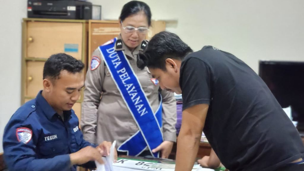 Satlantas Polres kudus memberikan Edukasi terhadap Pemohon Cek Fisik BPKB yang bertempat di Ruang cek Fisik BPKB serta tak lupa selalu mengingatkan agar sebelum meninggalkan ruang pelayanan selalu mengecek surat surat kendaraan dan dipastikan tidak ada yang tertinggal.
