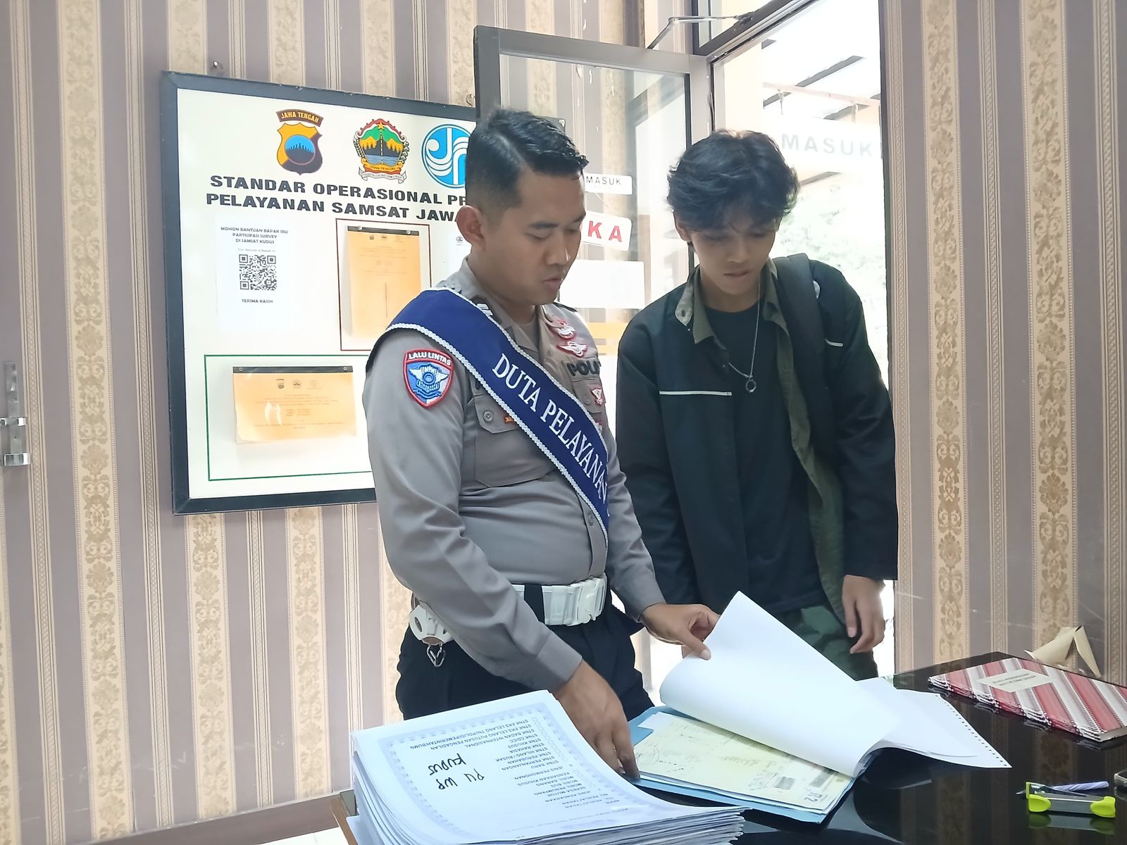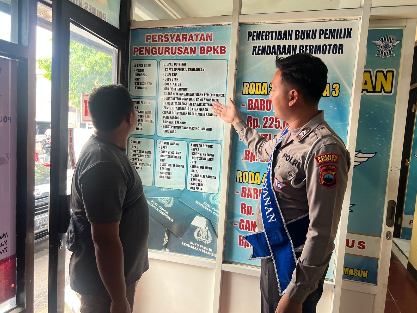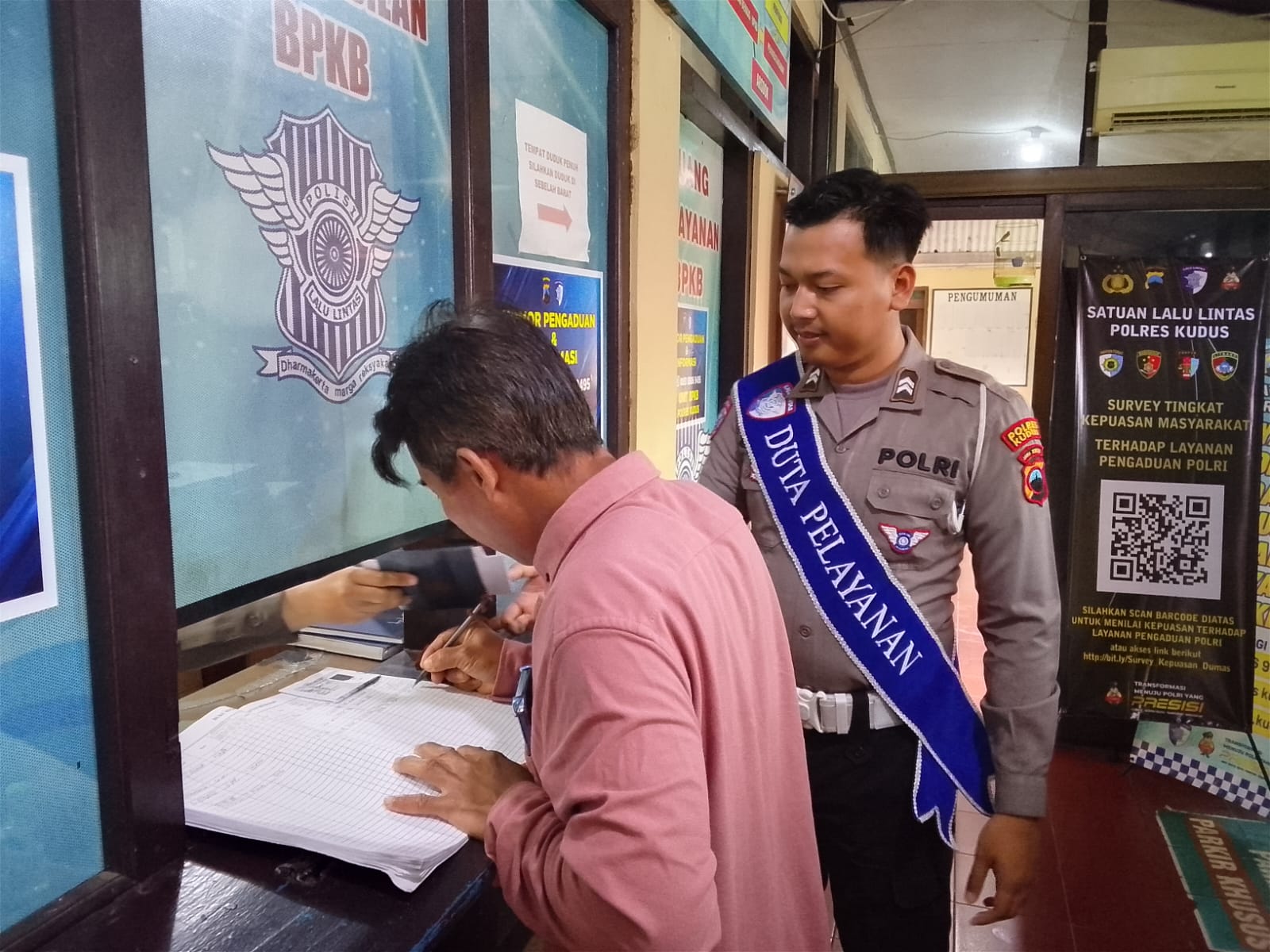 Duta Pelayanan memberikan edukasi terhadap pemohon bpkb terkait proses ganti pemilik bpkb dengan jelas dan humanis serta mengingatkan sebelum meninggalkan ruang pelayanan agar mengecek surat surat kendaraan dan di pastikan tidak ada yang ketinggalan.
